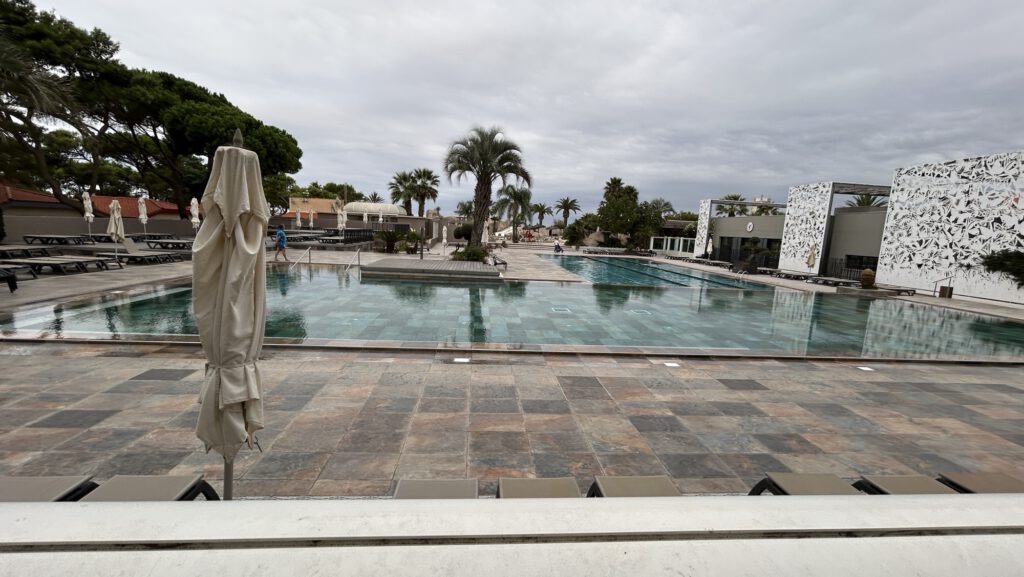 Der Poolbereich bietet ein Schwimmerbecken und ein Actionbecken mit ca. 21 °C Wassertemperatur. Etwas abgelegen liegt die Lagune mit Rutschen, Wasserfall und tiefem Becken. Für die Kleinsten gibt es ein Babybecken und ein Spaßbecken mit angenehmen 26 °C.